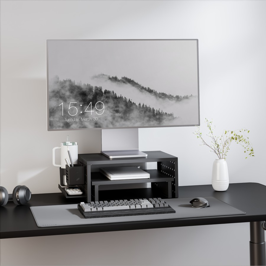 Pegboard Dual Monitor/Laptop Stand with Accessories