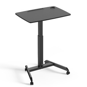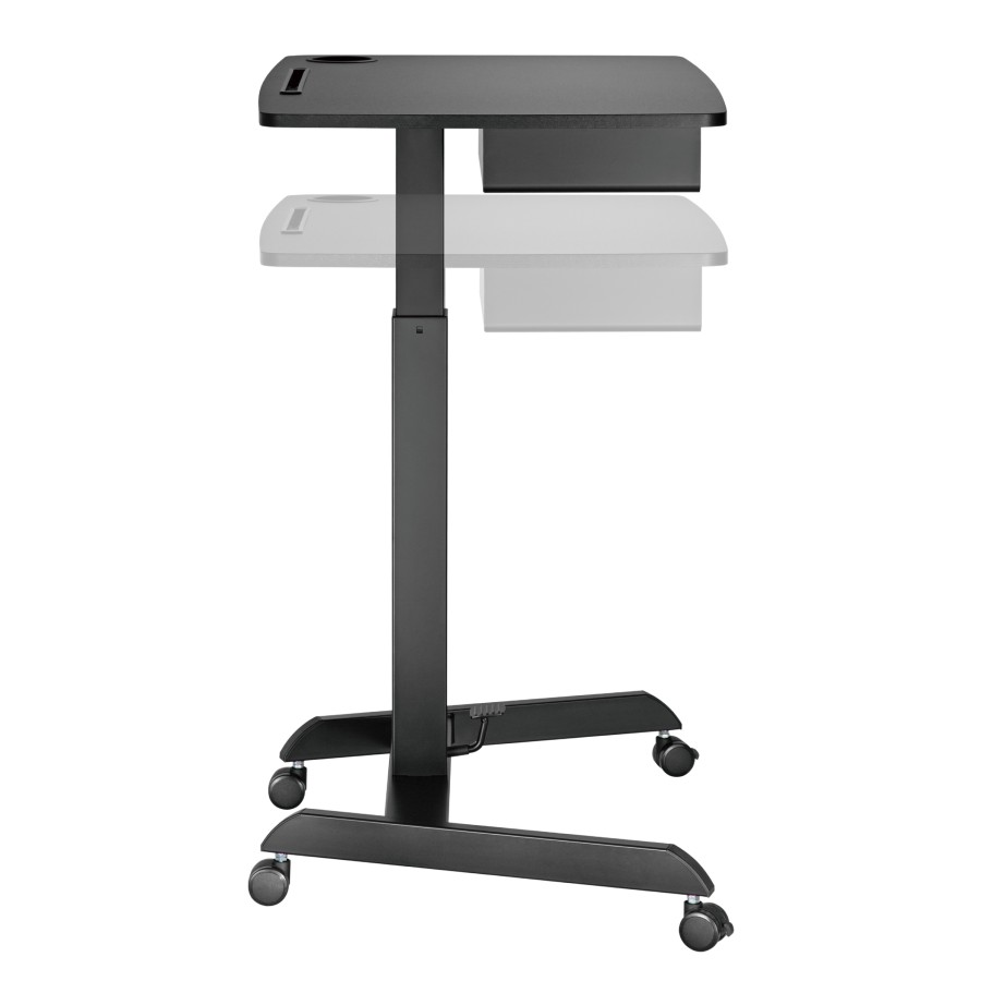 Mobile Height Adjustable Sit Stand Desk, Large, With Shelf - Black