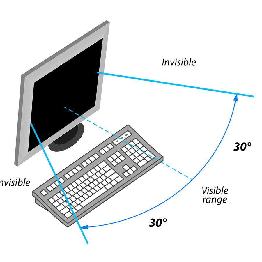 Micro-Louver technology creates a narrow viewing angle. Image is only visible to those directly in front of the screen. Side view is black.